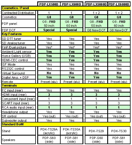 В новых экранах применяется технология, устанавливающая новые стандарты для плоскоэкранных телевизоров. Благодаря тому, что за счет существенного увеличения уровня черного цвета (на 80% «чернее», чем ранее) удается получать исключительно сочные цвета и четкие детали, эти новые экраны демонстрируют непревзойденные видео- и аудиохарактеристики. В новом модельном ряду будут представлены экраны с диагональю 42, 50 и 60 дюймов,с разрешением XGA (в продаже начиная с июня) и Full HD версии для моделей 50 и 60 дюймов (в продаже с сентября). Плоскоэкранные телевизоры становятся привычной бытовой электроникой. Эти экраны меняют наши представления о таких телевизорах. С ними в ваш домбескомпромиссное качество, уникальные рабочие характеристики, поддающиеся тонкой настройке и современный дизайн.