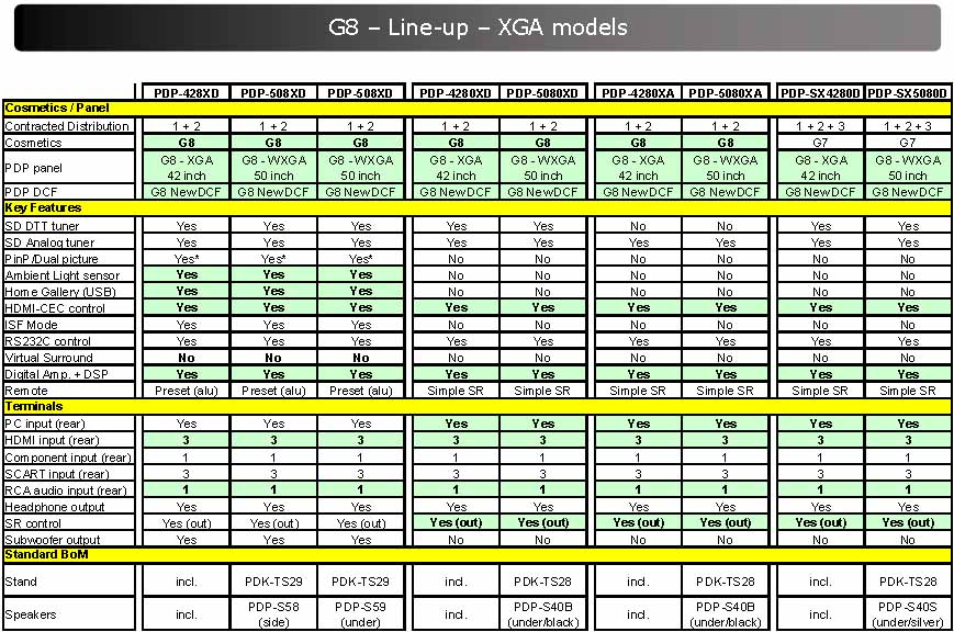 Перечень XGA плазменных телевизоров Pioneer G8: Pioneer PDP-428XD Pioneer PDP-508XD Pioneer PDP-608XD Pioneer PDP-4280XD Pioneer PDP-LX508D Pioneer PDP-5080XD Pioneer PDP-4280XA Pioneer PDP-5080XA Pioneer PDP-SX4280D Pioneer PDP-SX5080D