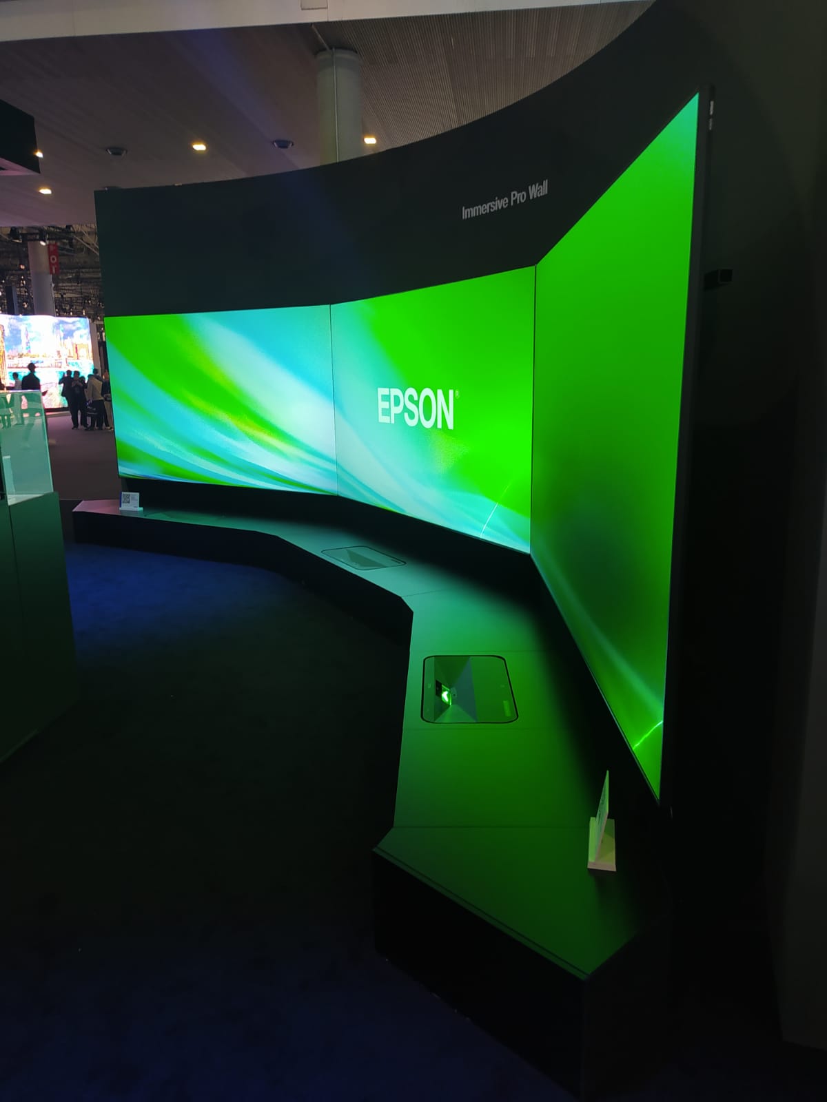 Ну и, конечно, объективы. Совершенство — оно в деталях. Ультракороткофокусные (УКФ) проекторы, по сути, открыли совершенно новое направление. Если, глядя на фото ниже, вы уверены, что перед вами видеостена из LED, то — нет, вы ошибаетесь. Это работают три УКФ-проектора Epson. Эффект практически тот же, а затраты на логистику и инсталляцию минимальны. Вот эти герои.