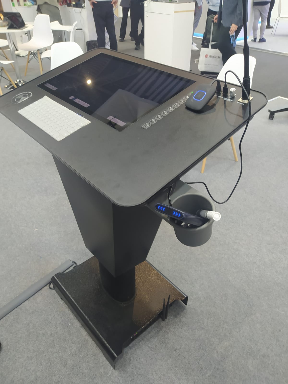 Всё разумнее становится дизайн дисплеев. Варианты на стойках со встроенными аккумуляторами (идея не новая, но новый дизайн и новое развитие), удобные ручки для переноски, меньший вес.
