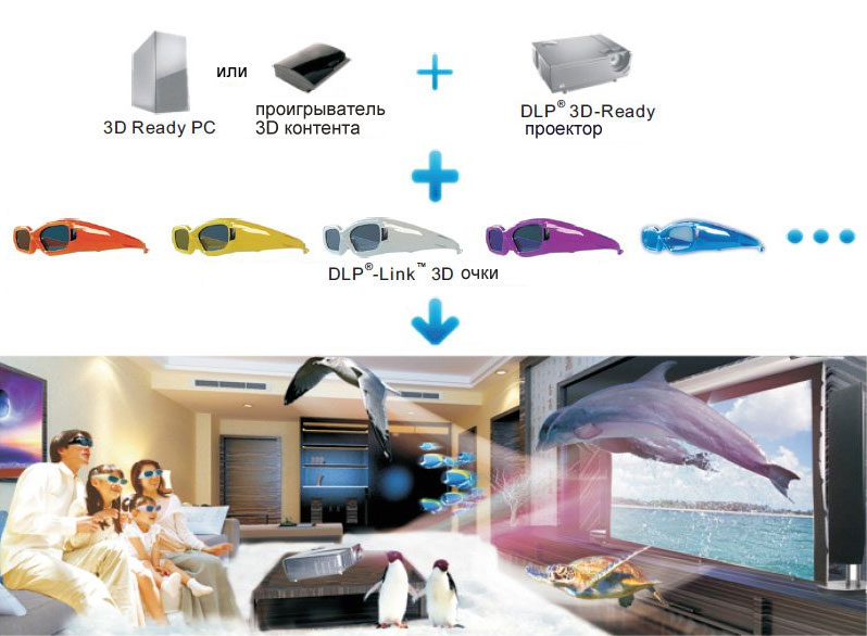 Никакой дополнительной установки не требуется, достаточно просто надеть 3D очки CS-VADD во время видео-показа в режиме DLP®-Link™.