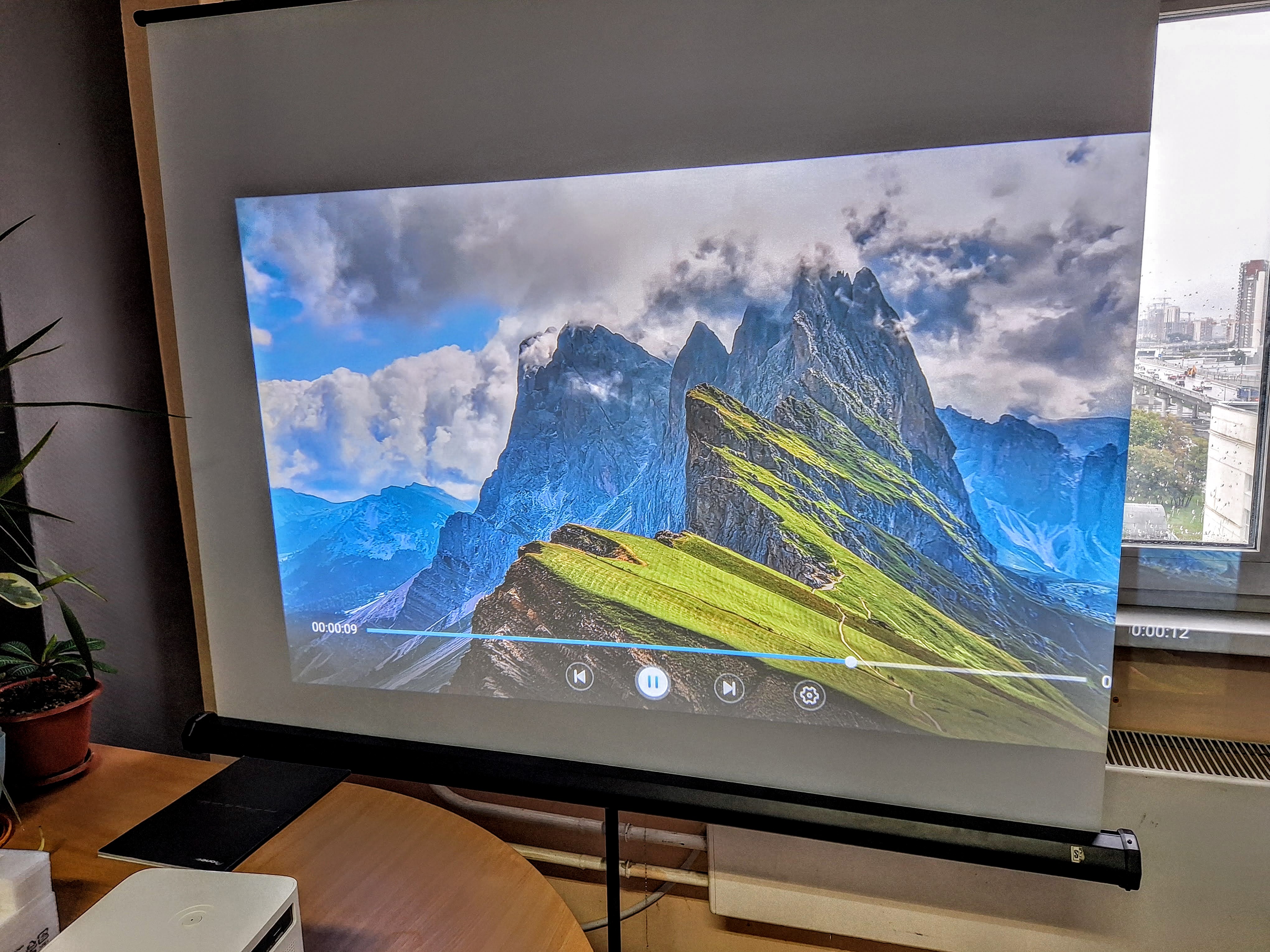 - Бесшумная система охлаждения. Это самая большая болячка дешевых проекторов после дефицита яркости, которая сводит на нет все остальные плюсы.