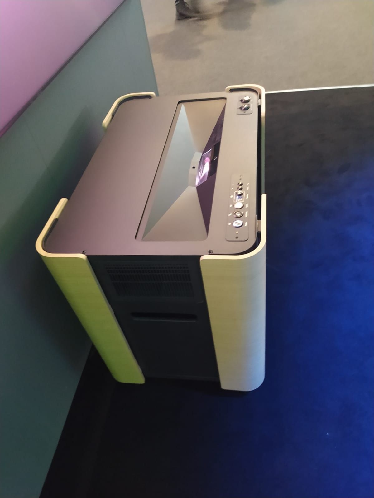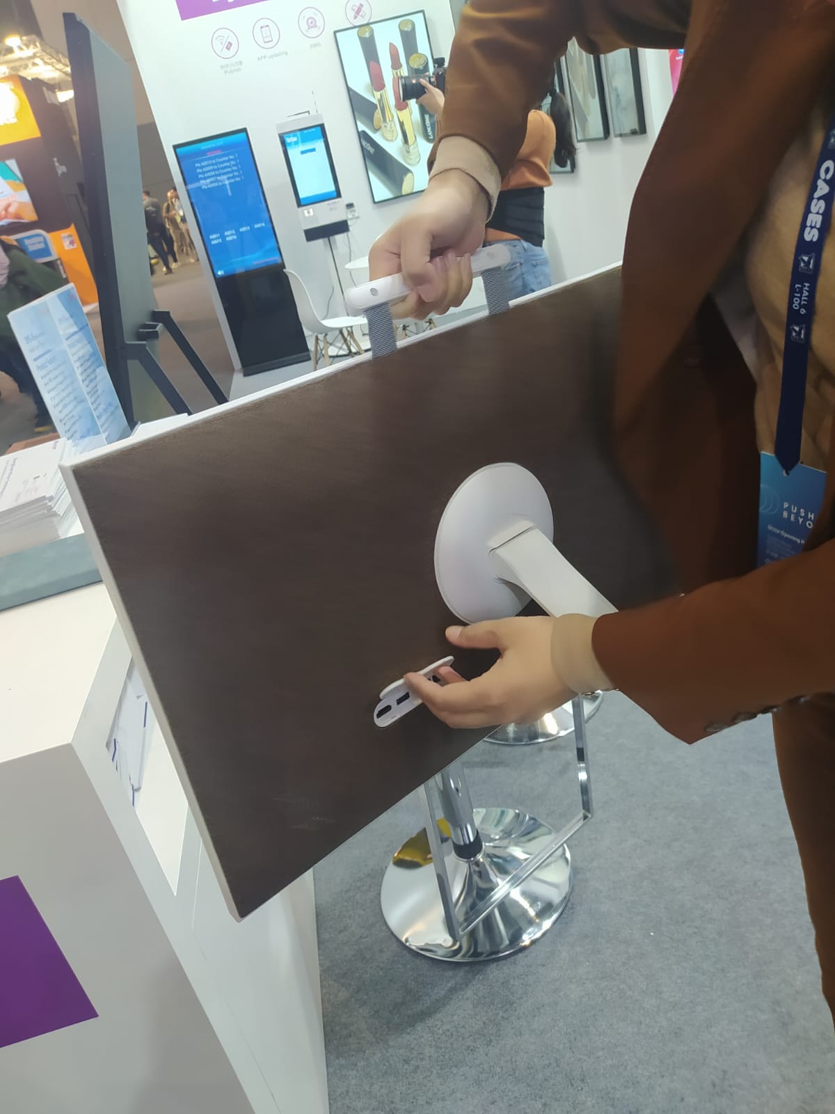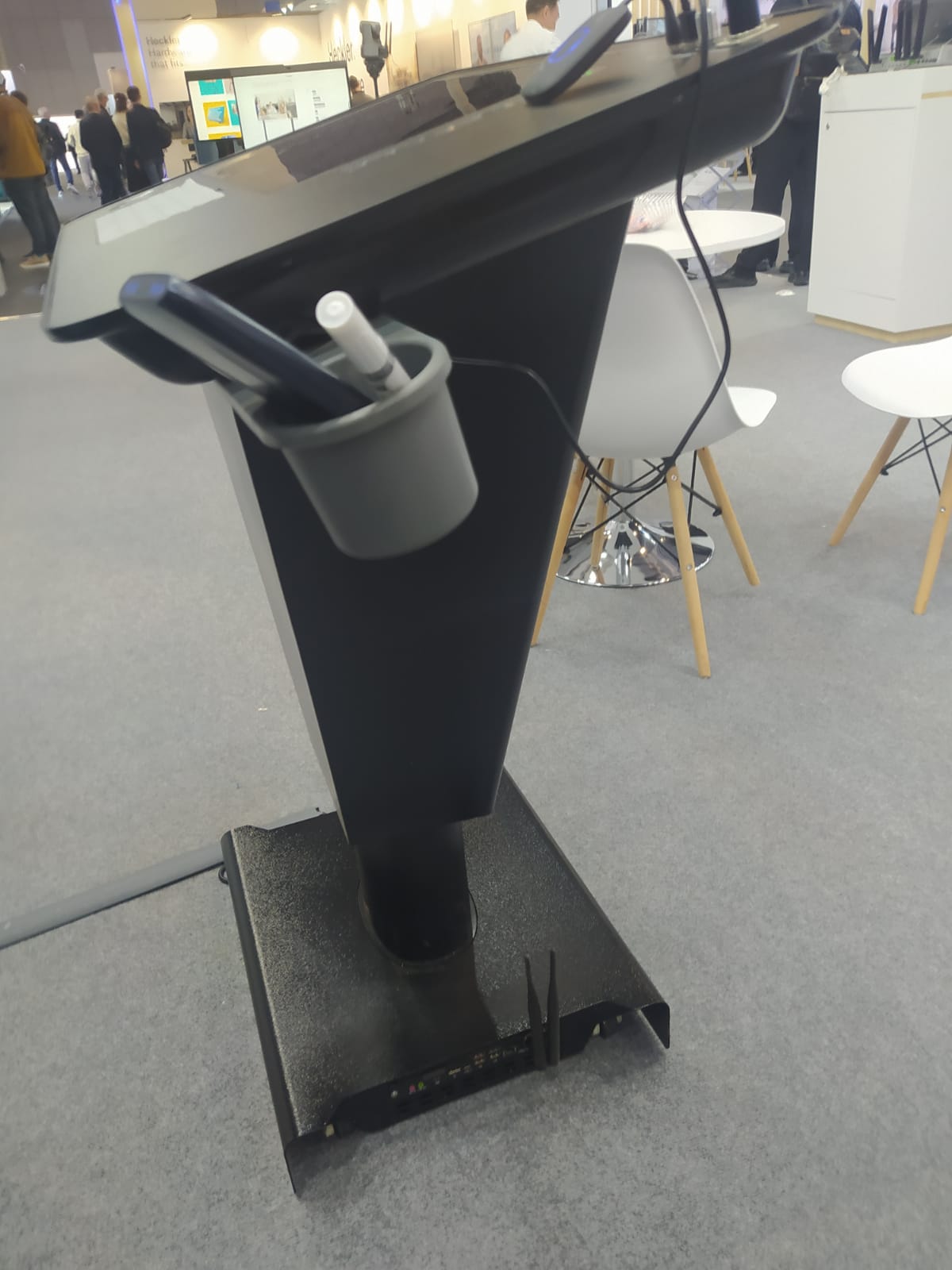 Всё разумнее становится дизайн дисплеев. Варианты на стойках со встроенными аккумуляторами (идея не новая, но новый дизайн и новое развитие), удобные ручки для переноски, меньший вес.