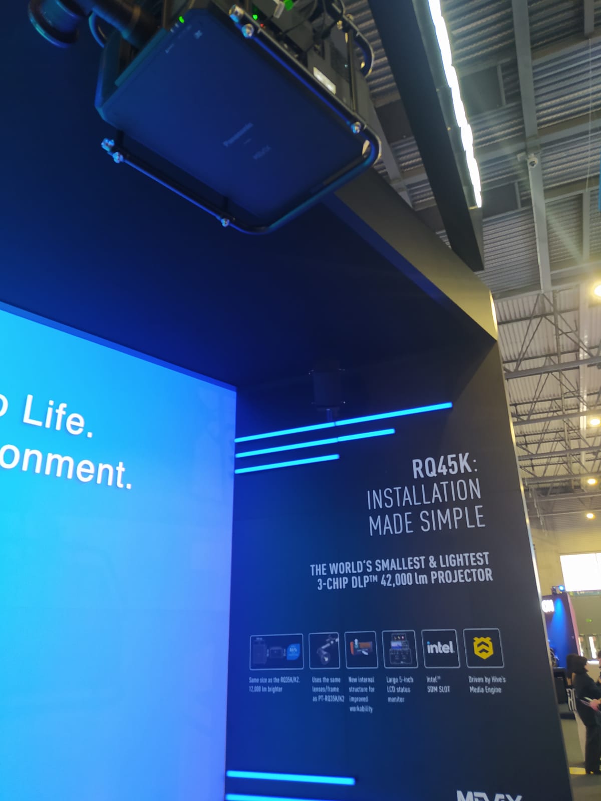 Ну и, конечно, объективы. Совершенство — оно в деталях. Ультракороткофокусные (УКФ) проекторы, по сути, открыли совершенно новое направление. Если, глядя на фото ниже, вы уверены, что перед вами видеостена из LED, то — нет, вы ошибаетесь. Это работают три УКФ-проектора Epson. Эффект практически тот же, а затраты на логистику и инсталляцию минимальны. Вот эти герои.